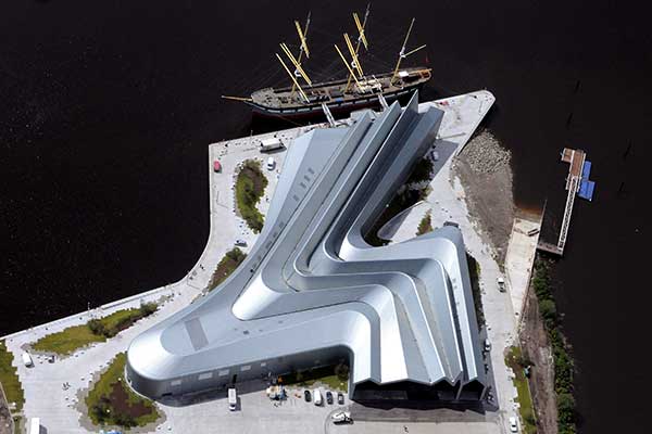 Designed by the internationally-renowned architect Zaha Hadid, the stunning building features a roof design that has caused much discussion. There are two schools of thought as to the inspiration for the unusual design: one being that it is intended to mimic the Glasgow skyline, and the other that it is based on the “squidgy S” shape of a napkin dropped by the architect whilst she was eating at a Glasgow restaurant! The fact that she took a photograph of the napkin before picking it up suggests there may be some truth in the latter view.
