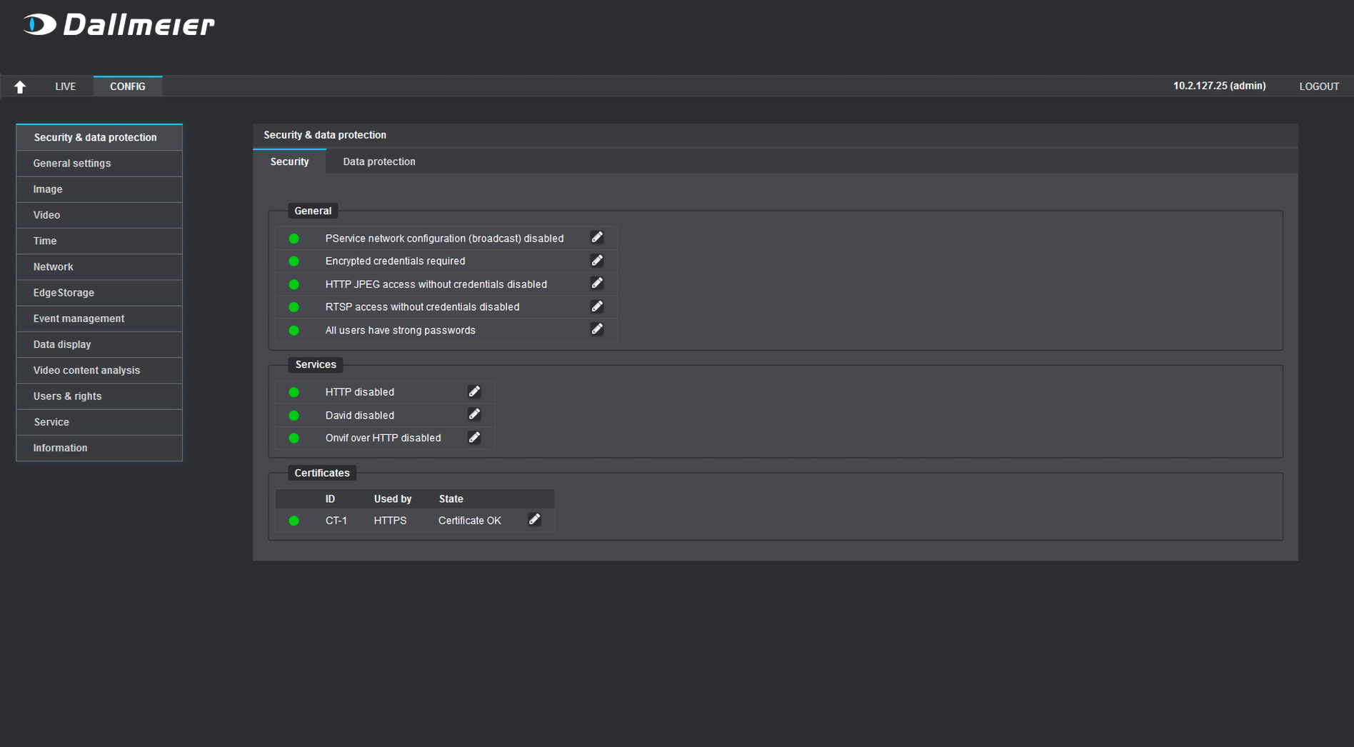 The cameras of the Picoline series include comprehensive security features which can be adjusted flexibly to reflect the requirements of each customer. Like all Dallmeier systems, when used with Dallmeier software and recording systems the cameras of the new Picoline series also offer a full portfolio of data protection and data security functions – from privacy masking to authentication procedures, end-to-end encryption or security gateway functions. When used with third party systems, the cameras operate on the basis of the functions offered by those systems.Further information