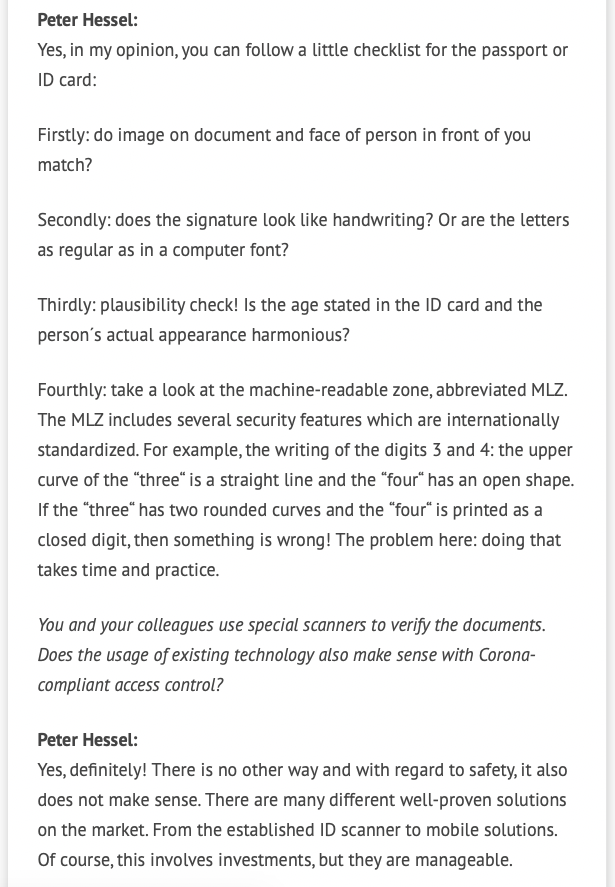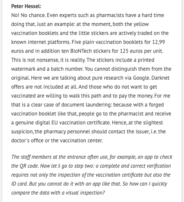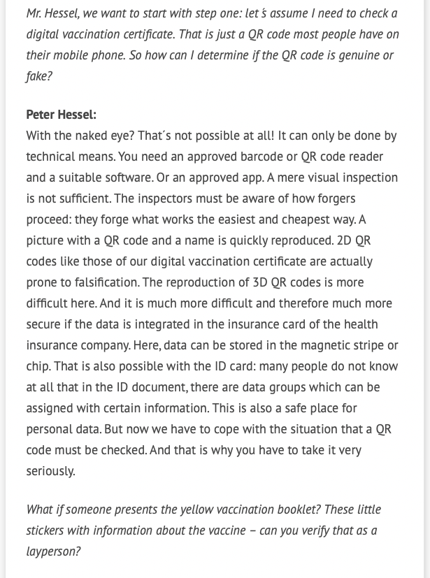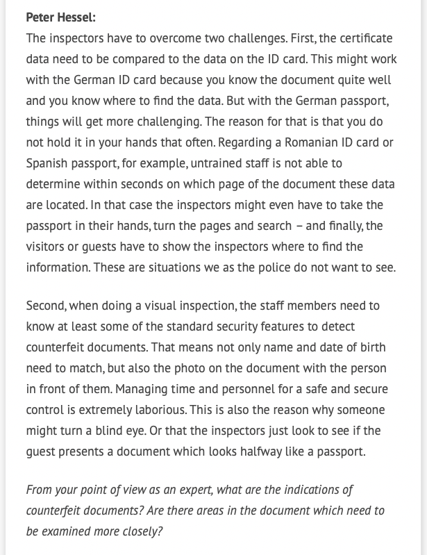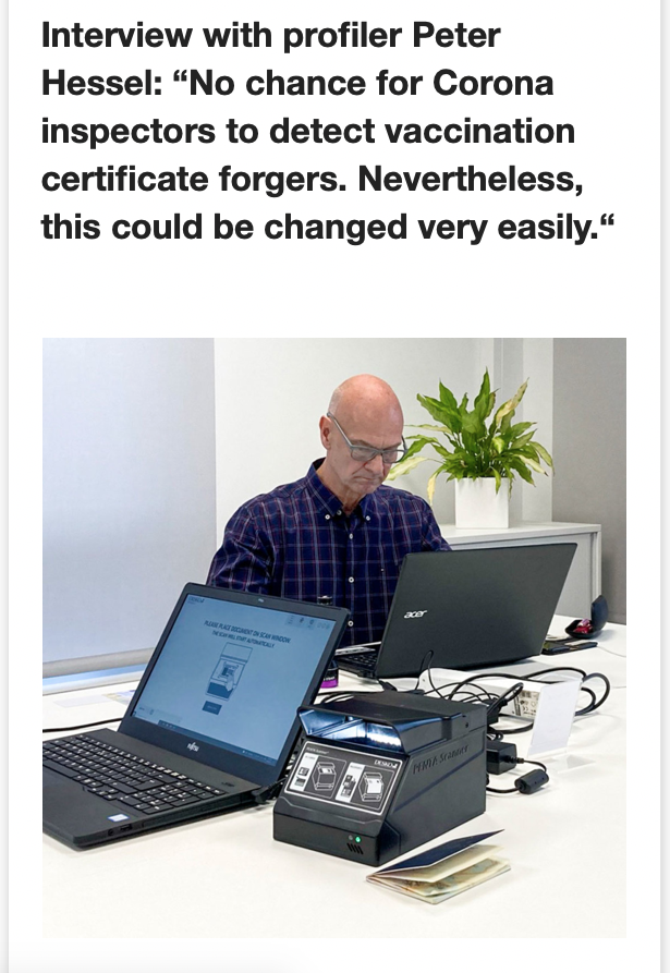 DESKO: Interview with profiler Peter Hessel: “No chance for Corona inspectors to detect vaccination certificate forgers. Nevertheless, this could be changed very easily.“