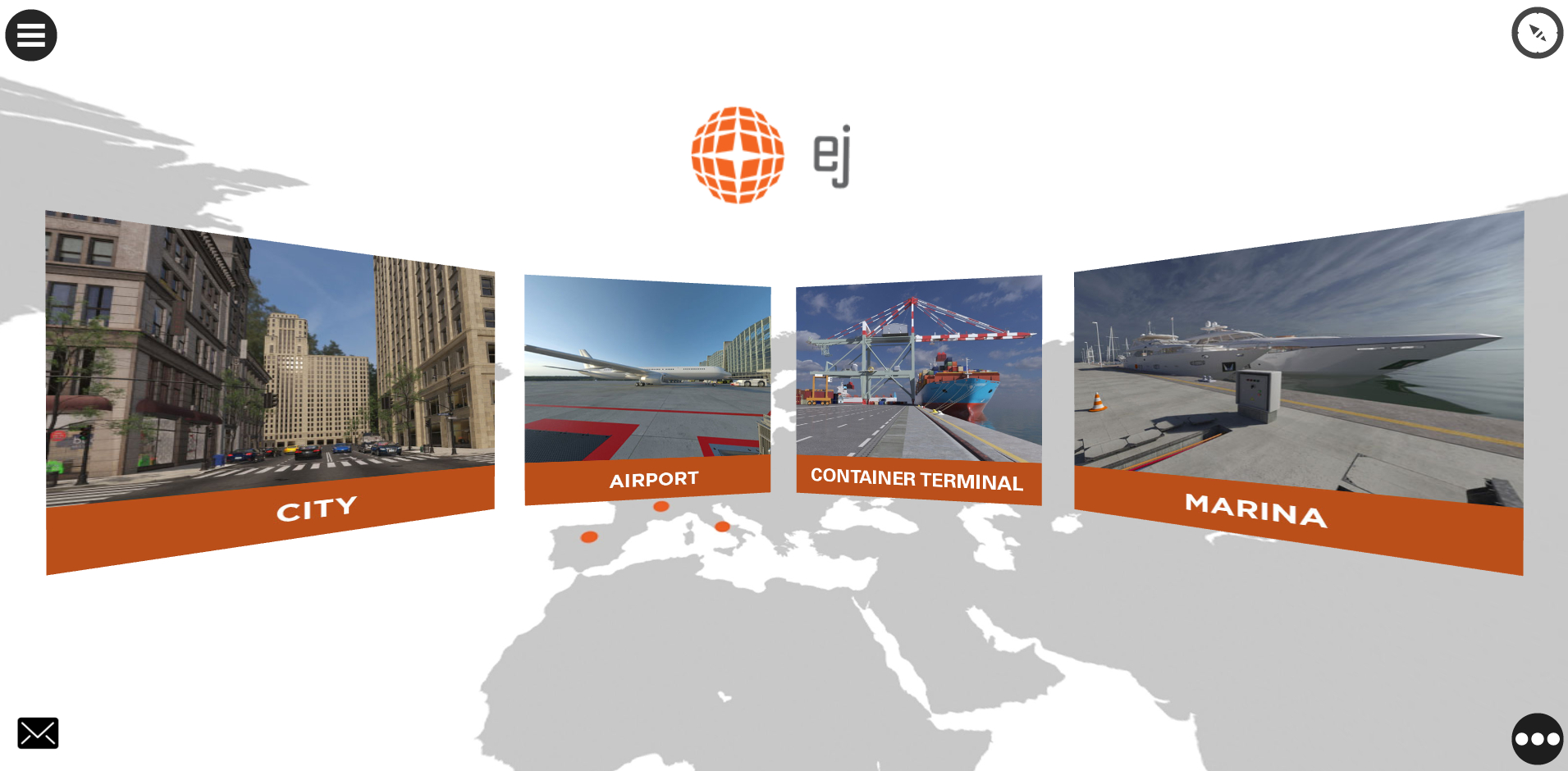 Welcome to EJ EXPLORE, our 360° virtual showroom designed to let you discover our universe from a whole new perspective. Stroll through realistic environments : through realistic environments, from airport parking, terminal or runway, to commercial ports or marinas.