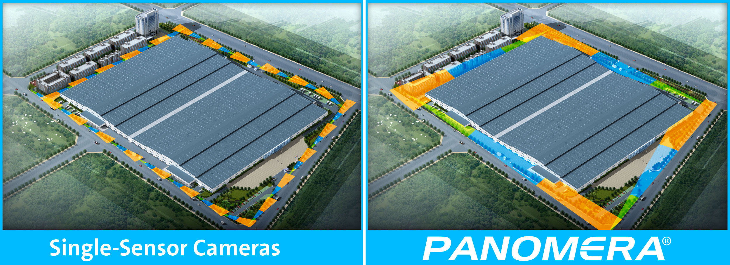 Particularly for capturing large expanses, Panomera® reduces the number of cameras needed and consequently the infrastructure and cost expenses associated therewith many times over.