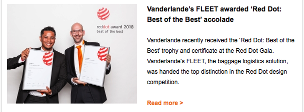 FLEET wins Red Dot Award, Heathrow selects Vanderlande for maintenance and IT services