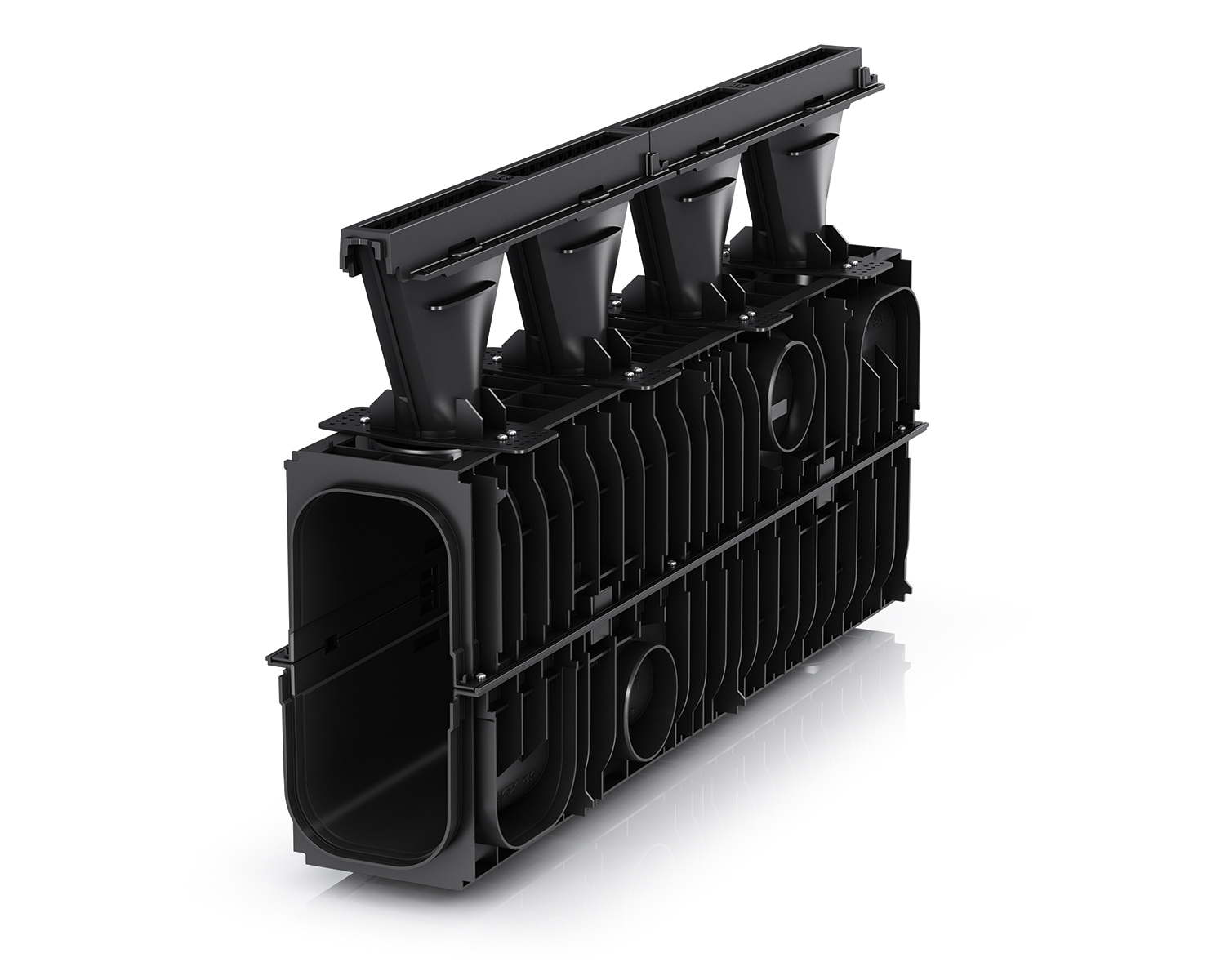 Manufactured from recycled modified polypropylene, RECYFIX HICAP 1200 Slot Channel units weighed only 13.2kg / metre, allowing quick and easy handling and installation on site.