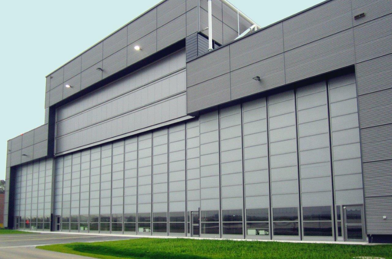 Butzbach hangar door and fibreglass curtain wall installations in Wunstorf in detail