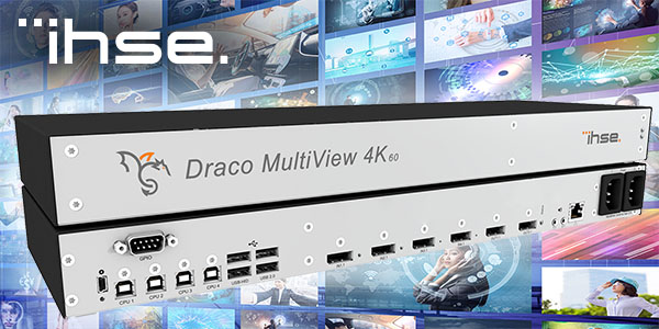 IHSE launches a multiviewer device for DisplayPort signals in resolutions up to 4K60. The Draco MultiView4K60 allows real-time display of up to four video signals on one or two monitors with picture-in-picture functionality.