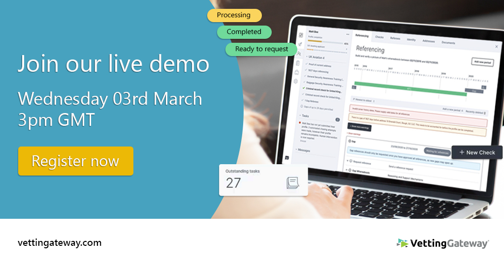 Join the VettingGateway live demo to ensure you’re making the most out of your free referencing tool!