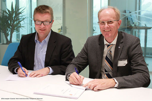 Image – Arve Dimmen, Director of Maritime Safety at the Norwegian Coastal Administration and Morten Gjersøe, Director Business Development Jotron.