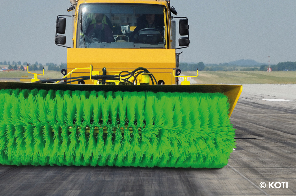 During winter months KOTI runway brushes are indispensable on airports and airfields. Runways soon become unusable with snow and ice, so to ensure airplanes can take-off and land safely, runway brushes or airport brushes are used as a part of the cleaning routine.