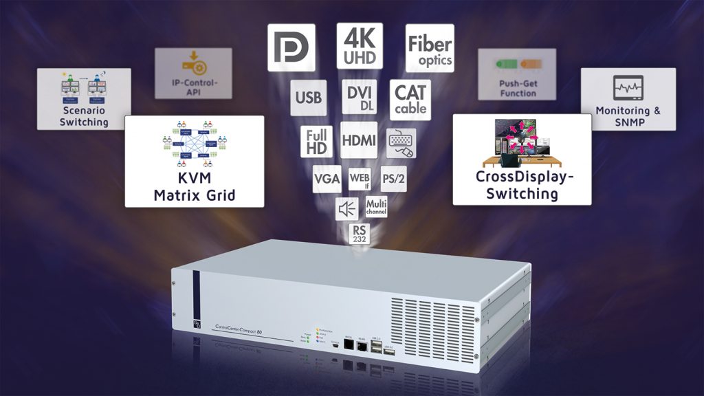 Integrated SNMP and monitoring make the systems even more reliable. In large, distributed installations, users are able to connect their systems via a KVM Matrix-Grid™ to satisfy the increasing demands for interconnection. As is always the case for G&D systems, users benefit from easy installation and operation.