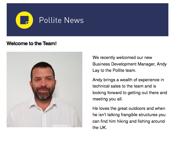 In this issue…Andy Lay has joined the Pollite team, we show off our custom approach