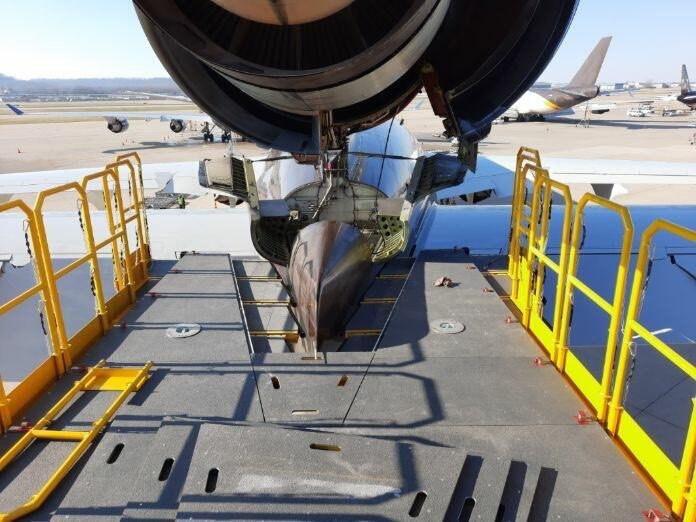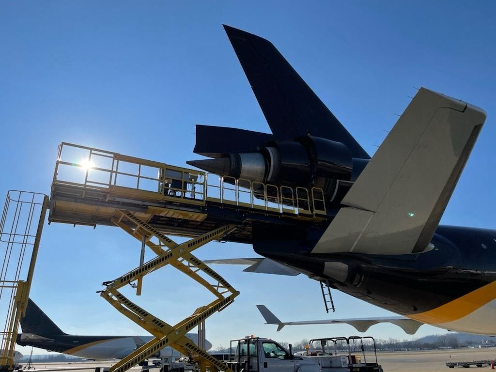 “The V-deck configuration is typically used to maintain mid-engine aircraft such as the MD11 used extensively by leading cargo and logistics companies such as FedEx and UPS.