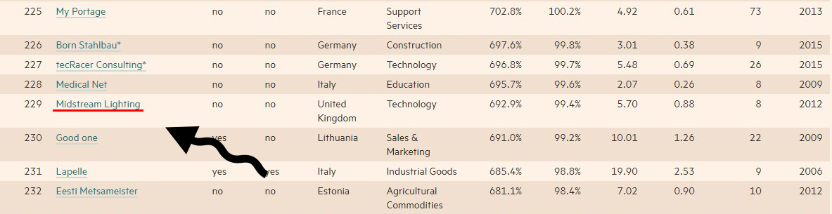 The Financial Times has just announced its annual award listing of the 1,000 fastest growing companies in Europe, based on turnover.