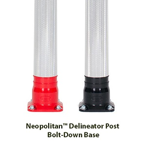 Neopolitan Delineator Posts are available in high visibility red or black with a choice of 6 banding combinations. Its sleek contemporary design lends well to urban environments along with a wide variety of applications.