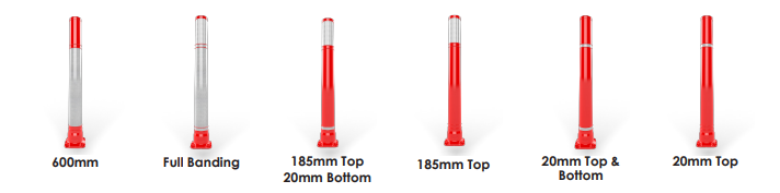 - A choice of retroreflective banding combinations including 600mm TSRGD compliant (Diagram 7103) configuration suitable for direct use on the highways.