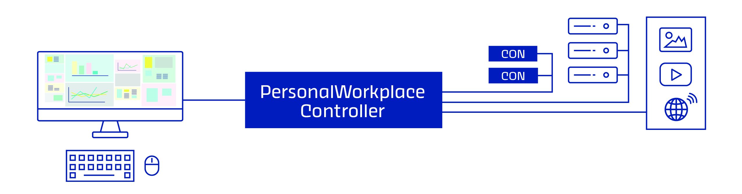 Displaying, arranging, and operating multiple sources on one monitor with the PersonalWorkplace-Controller.