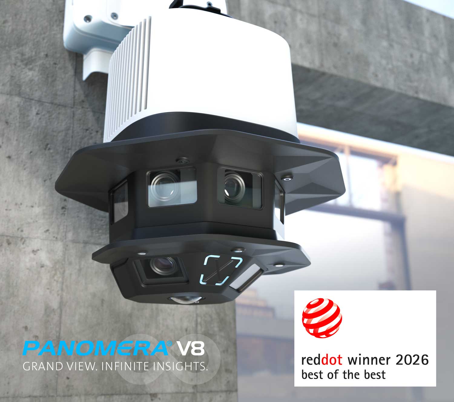 After already winning the iF Design Award 2026, the Panomera® V8 has now also impressed the jury of the Red Dot Design Award. The Red Dot Design Award is one of the most internationally renowned competitions in the field of design. The competition looks back on a history spanning more than 70 years: since 1955, it has recognized products that stand out for their high design quality.