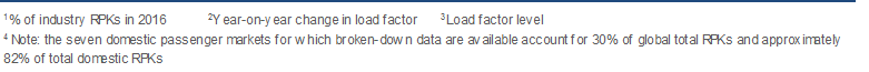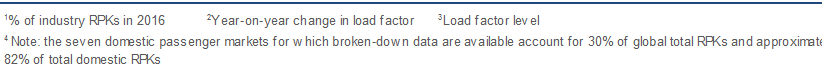 - Russia’s airlines posted the fastest year-on-year growth rate at 16.7%. This occurred against an improving economic outlook as oil prices have firmed, and business confidence indicators are quite high by recent historical standards. However, capacity growth mostly kept pace with demand and load factor was nearly flat at 78.7%.