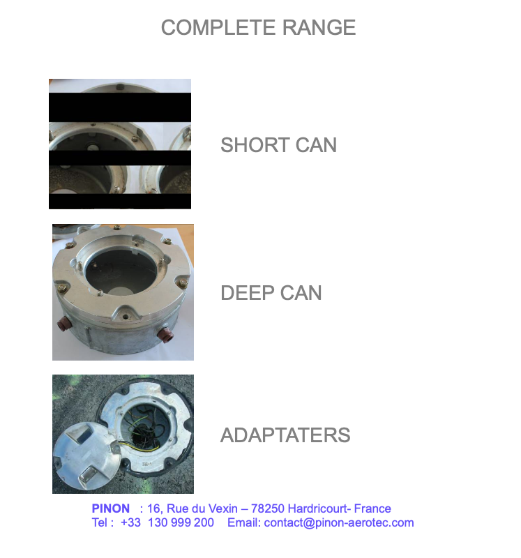 We can develop specific dimensions for base cans (diameters , heights ), in ALUMINIUM or GALVANIZED STEEL, and all adapters on demand.