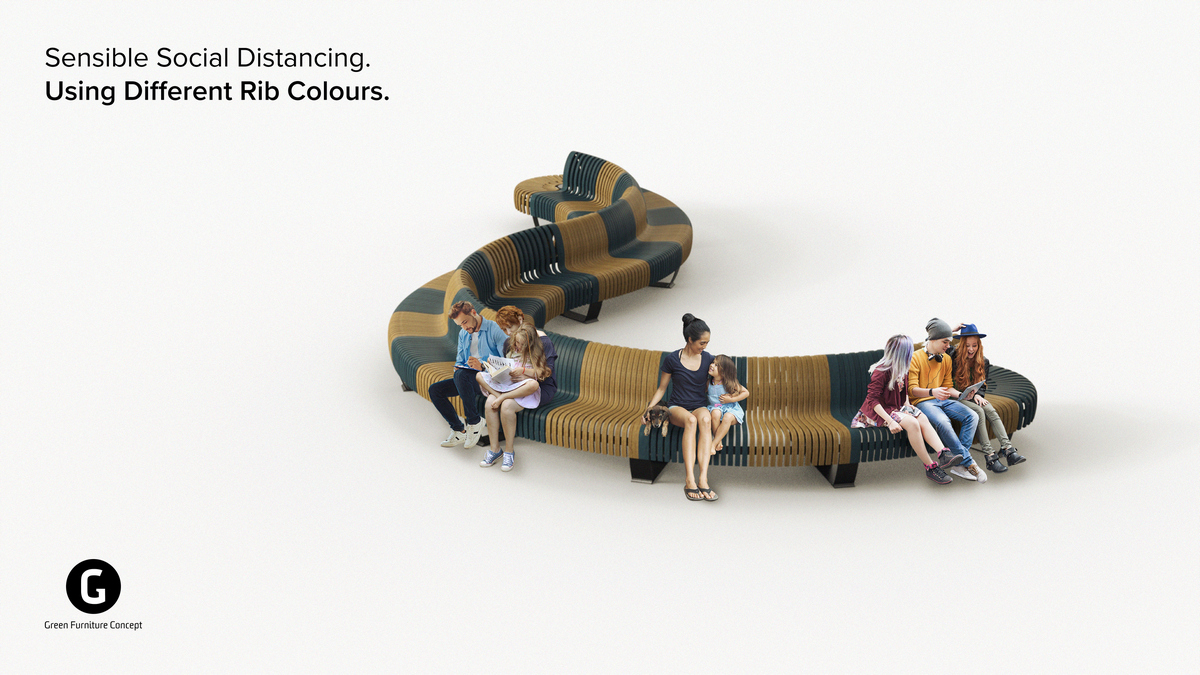 In these times of COVID-19, social distancing has become the topic on everyone’s mind. But with the current state of panic and uncertainty, public spaces are often resorting to awkward quick fixes that make people feel safe without much regard for long-term practicality. Patchwork solutions are popping up in public spaces all over the world, but they’re inadvertently bringing up uncomfortable and anxious feelings for everyone. Solutions like big X-marks between every third seat can separate families, making them sit unreasonably far from one another. Also, plexiglas separators can bring up negative associations such as feelings of punishment or isolation. And while these solutions fulfill their function of separating people, it’s at the expense of the warm and inviting feeling that public spaces should have. The team at Green Furniture Concept took on the challenge of developing solutions using “sensible social distancing”.