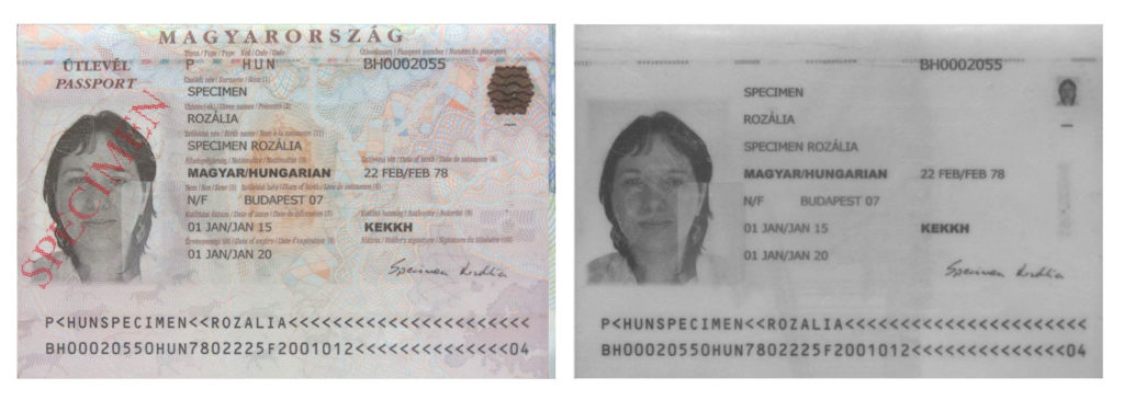 - For standardized security features, you need to know the relevant standards – e.g., the ICAO 9303 – and have suitable equipment for verification, such as IR or UV light, magnifier, etc.