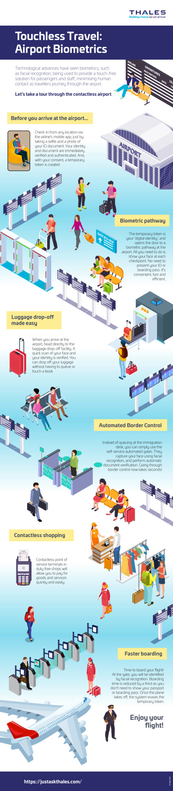 Check out our infographic below which takes you through the contactless airport or download it as a pdf here to see what the biometric pathway looks like.