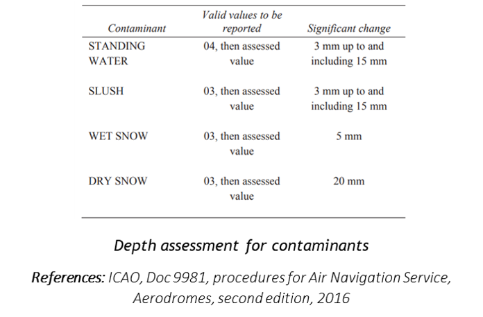 Contaminant depth passes 3mm: According to Runway Condition Assessment Matrix (RCAM) contaminant depth 3mm is the limit value for different runway condition code classes. When contaminant depth passes 3mm, it requires immediate reassessment. Contaminant depth below 3mm normally represents runway condition code #5. Depth over 3 mm reflects runway condition codes #3 or #2 depending on the contaminant type.
