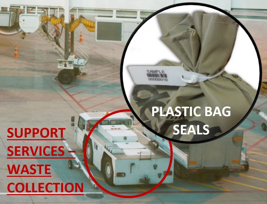 Waste or equipment collection bags and sacks should be sealed with printed identification ties or security seals to provide safe transport, recycling/reuse or disposal of all manner of items which are bulk-bagged in the course of main airline and airport operations, or operations ancillary to this. Products can be customised to suit your particular needs – with printing of company name, logo or text; unique sequential numbering and barcodes; as well as packaging to suit operational requirements on the ground.
