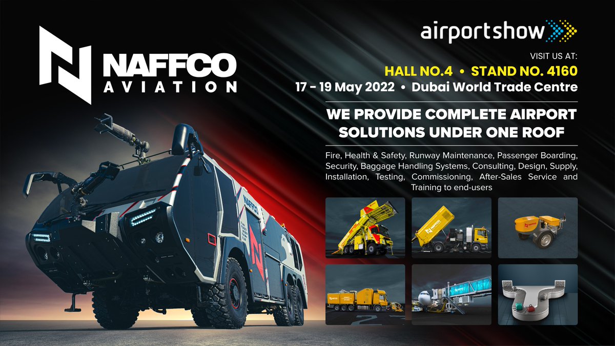 NAFFCO Aviation will be participating in the Dubai Airport Show during 17-19 May 2022. Visit us at Stand 4160 in Hall 4.