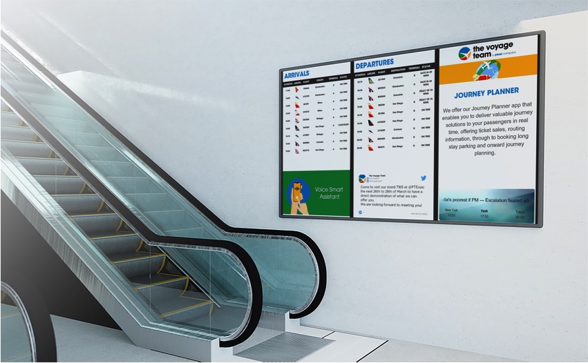 Our innovative, motivated and multi-skilled teams based in York, Milan and Catania have developed cutting-edge solutions to support the travel industry. By combining quality and efficiency, we have been able over the years to add value to our customers’ requirements and to create tailored solutions to fit their needs. Our R&D team has developed a suite of products such our innovative chatbot, to facilitate communication and operations, and our new iFIDS (Intelligent Flights Information Display System), shown in the picture below, to provide dynamic flight and passenger information combined with customisable information such as advertising, news or weather updates.