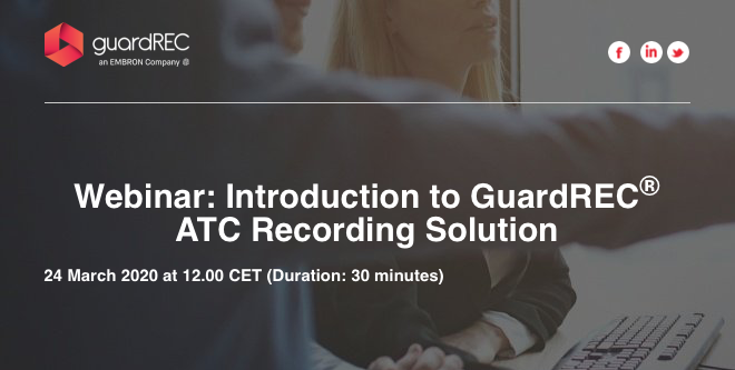 You are invited to join our 30 minute Live Webinar – 24 March 2020 at 12.00 CET for an introduction to GuardREC® ATC Recording Solutions.
