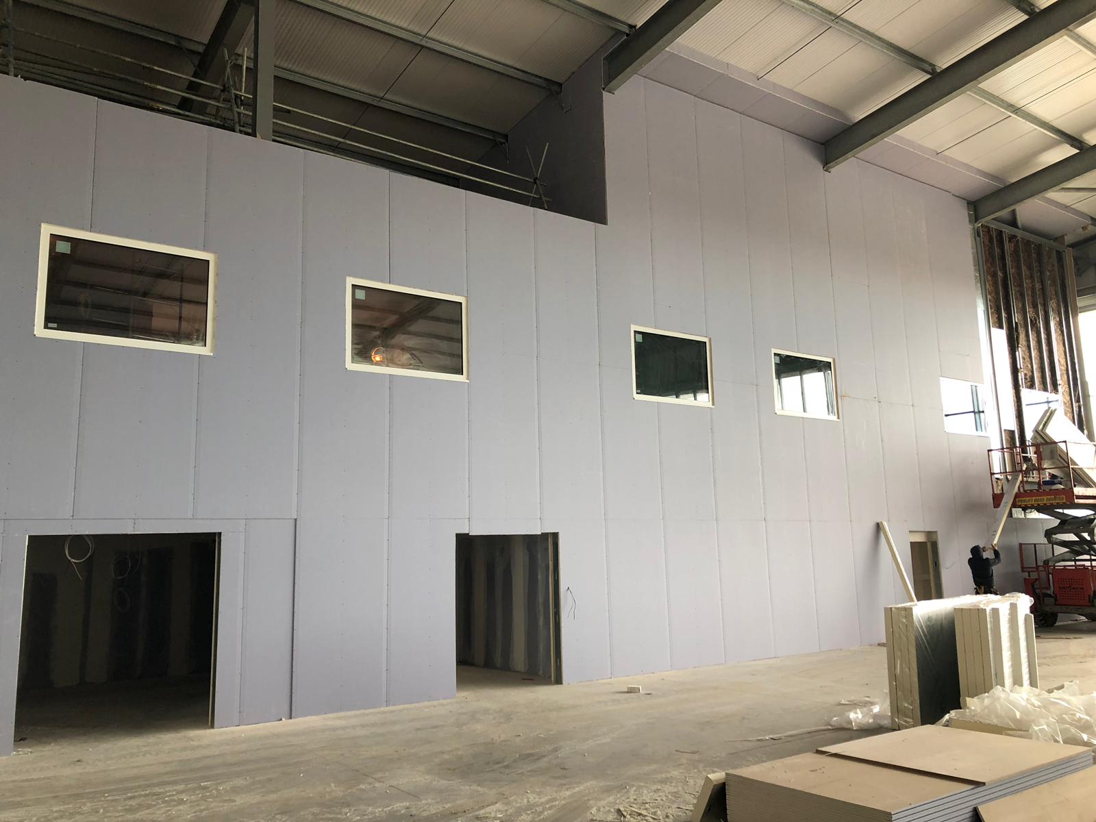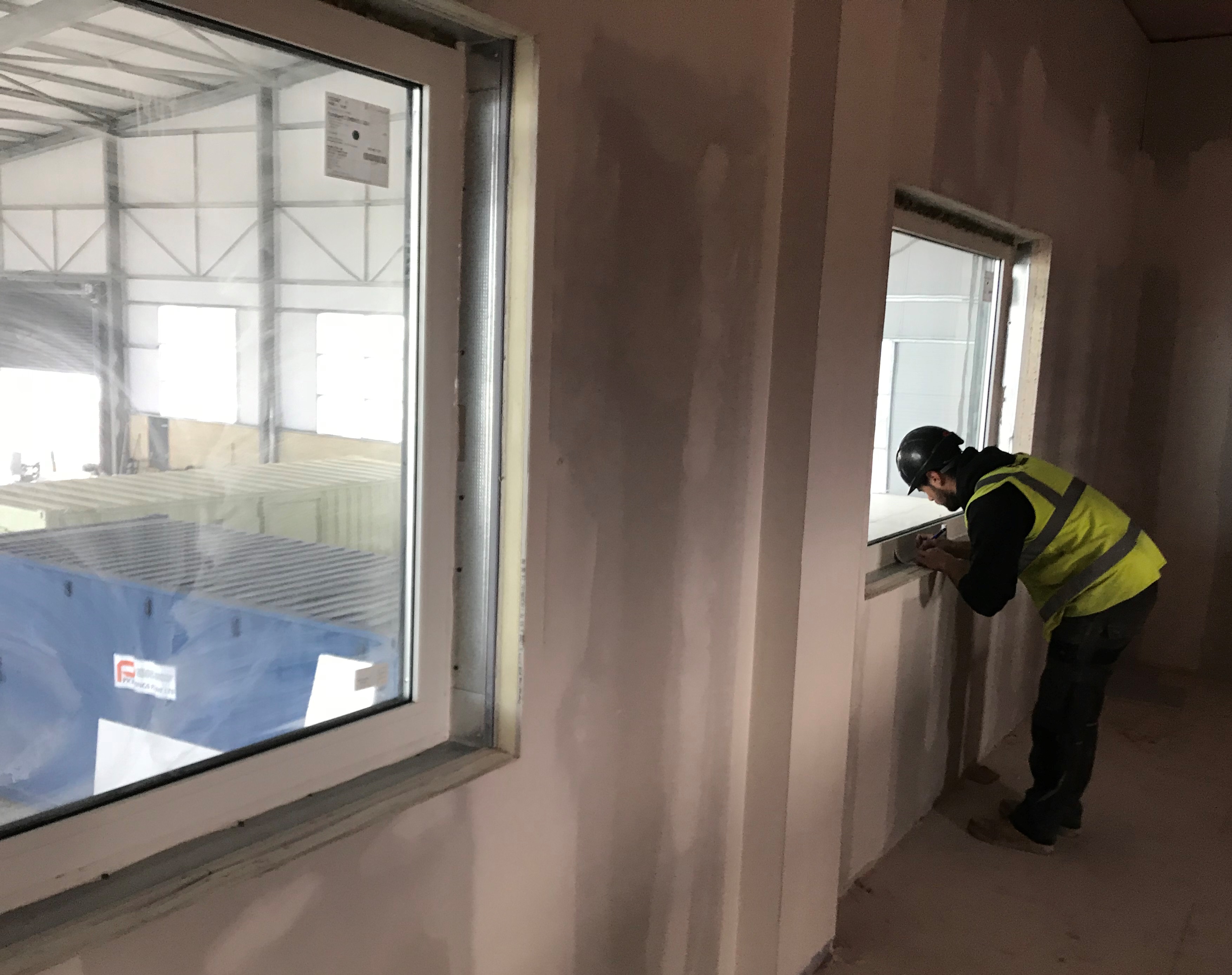 The fire resistant windows are for new offices that look out into a main hangar, and hence the need for fire resistance protection.