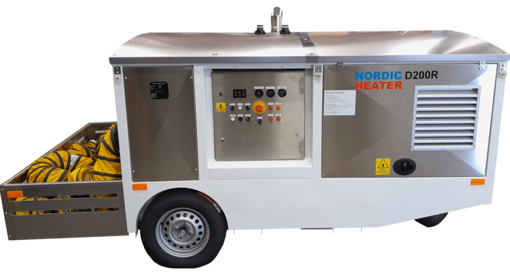 The company produces electric and diesel powered heaters that develop a heat capacity from 42 kW up to 200 kW.